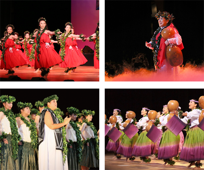 ハワイアンミュージックに合わせて踊る「アウアナ(現代フラ)」に対し、「カヒコ」とは古典フラを意味します。チャントと呼ばれる詠唱に合わせて踊り、宗教的行為として奉納されることもあるフラです。このクラスでは、瓢箪や竹から作られた楽器を使ったレッスンも行います。